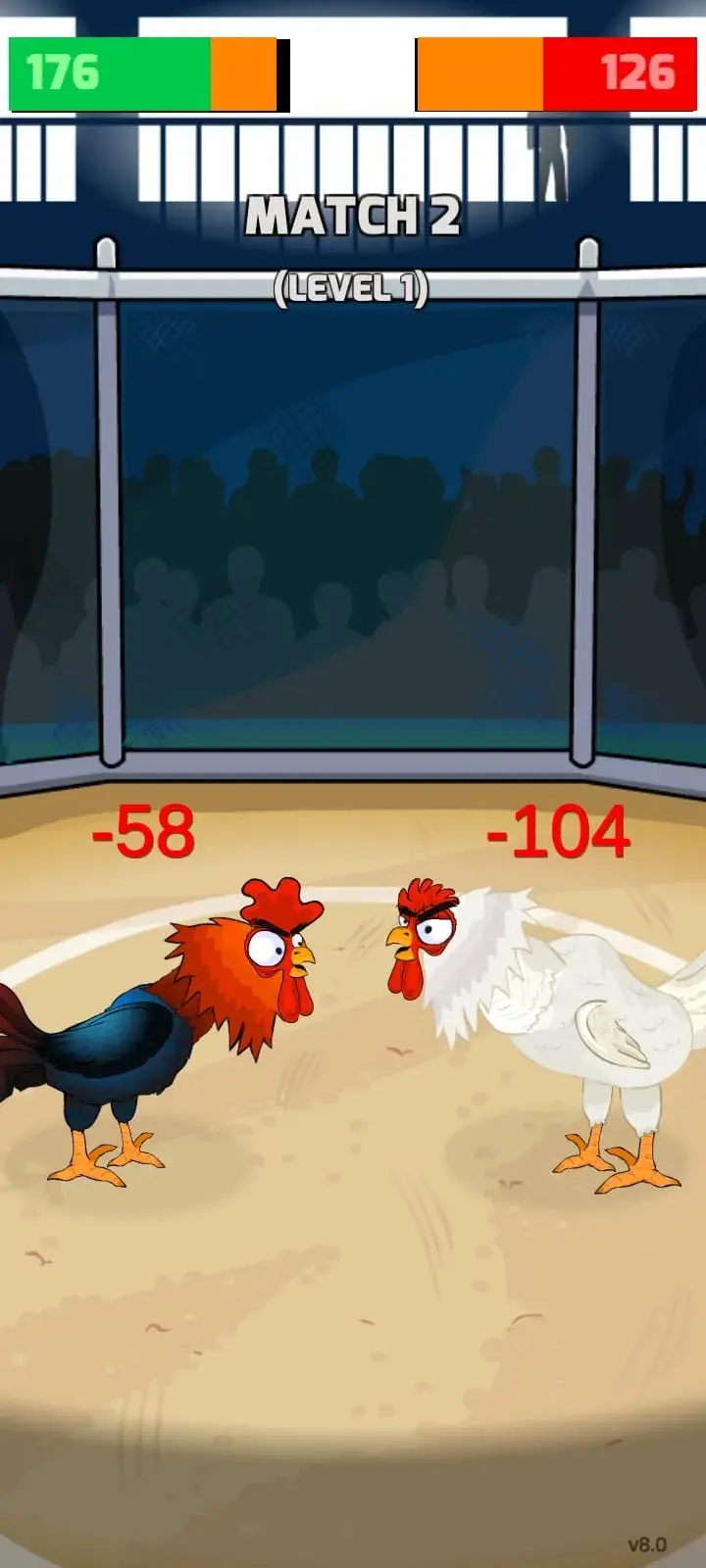 Visual Style 18_1015cb-4b> | Clean and simple. No frills. Just fighting chickens. 18_1d4327-38> | Sharper visuals, animations, and effects. 18_079fa1-dc> |